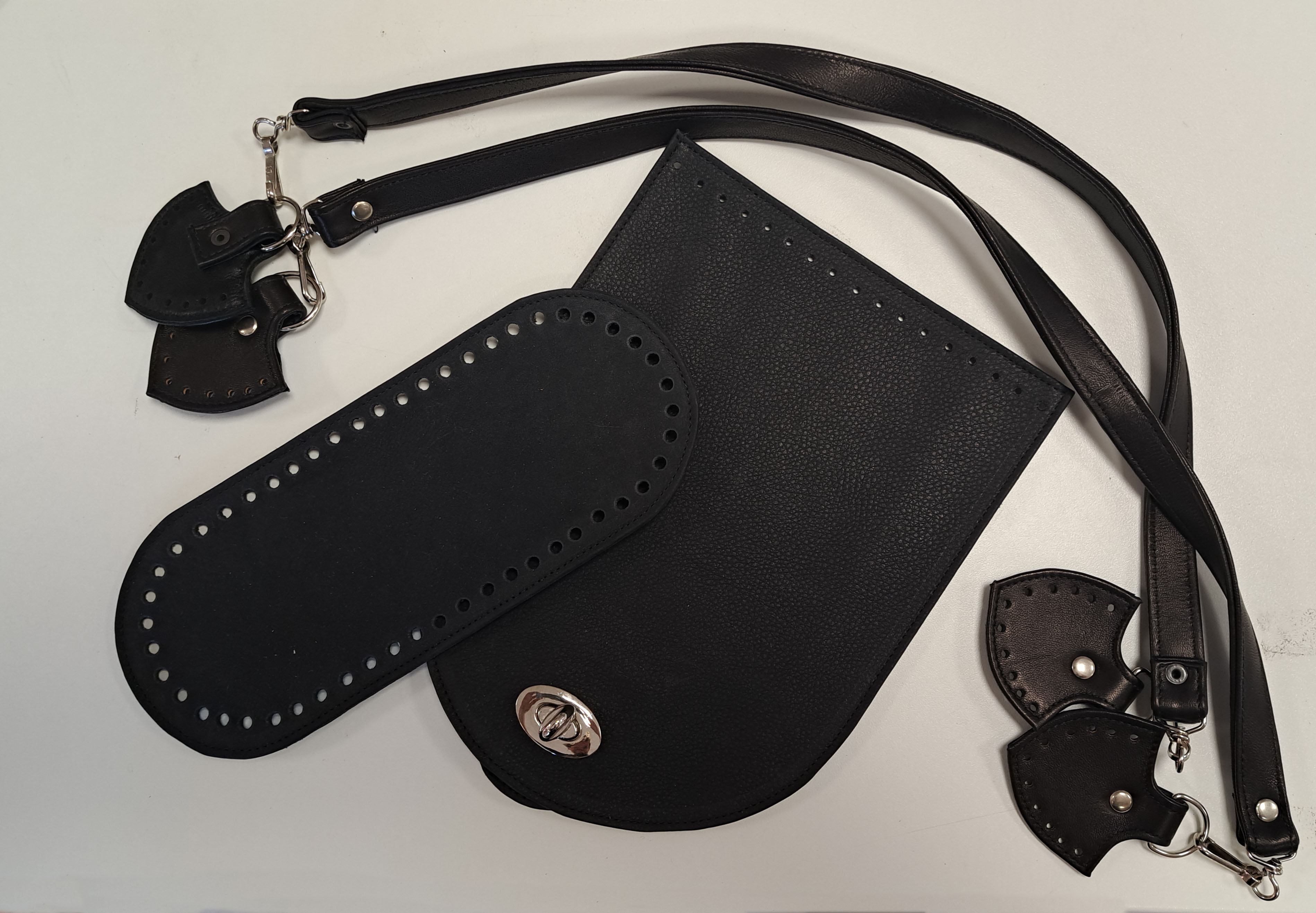 Bőrdíszműves által egyedileg készített táskaalkatrészek.